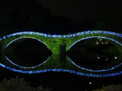 諫早にせっかくきたのでイルミネーションめぐり〜 眼鏡橋のイルミがすごいキレイでした。 夕食にちゃんぽん食したれろ。